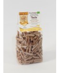 Pasta secca di sfarinato biologico di antico grano duro siciliano Timilia, ottenuto da molitura a pietra naturale .